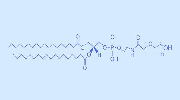 Polyethylene glycol conjugated with 1,2-distearoyl-sn-glycerol-3-ethanolamine phosphate (DSPE). DSPE peg is a phospholipid peg conjugate with hydrophilicity and hydrophobicity. Pegylated phospholipids are excellent liposome forming materials, and can also be used for drug delivery, gene transfection and vaccine delivery. PEGylation of phospholipids significantly improves the blood circulation time and stability of encapsulated drugs. These materials can also be used for targeted drug delivery by modifying their surfaces with targeted ligands (e.g. antibodies, peptides).